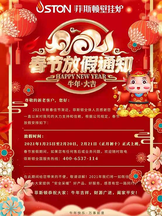 在此期間給您帶來(lái)的不便,敬請(qǐng)諒解!2021年我們將一如既往為大家提供“安全采暖”好產(chǎn)品、好服務(wù),感恩有您一路同行。