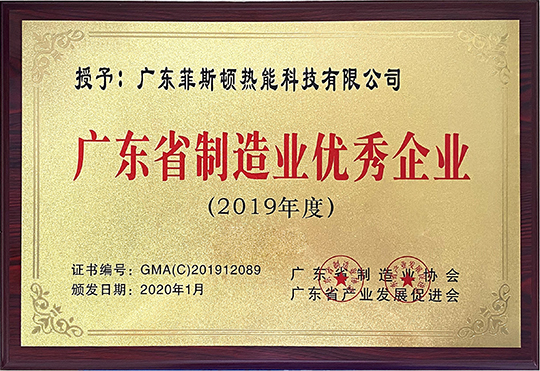 1月,廣東菲思盾熱能科技有限公司榮獲“廣東省制造業優秀企業”稱號。