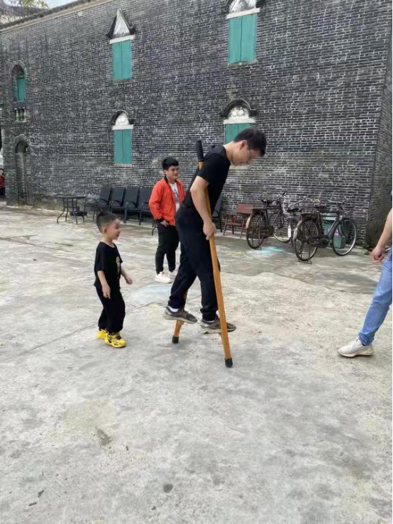 中午12點到達,公司員工聽著導游的指引,到達三泉灣廳內吃飯,里面的菜色各有特產,吃起來非常美味可口。飯后大家有時間就出去外面空地一齊騎單車,用起當地特色的用品在拍照,玩耍,大家都圍觀著看,小李對著小陳說道:“擔上兩個框,像極剛才從農田里工作回來。’聽完頓時現場人談笑風生,歡樂不斷。