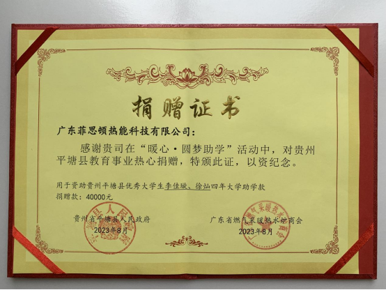 為幫助更多的困難家庭品學(xué)兼優(yōu)學(xué)生實現(xiàn)求學(xué)夢。8月初,廣東菲思頓熱能科技有限公司攜手貴州省平塘縣人民政府開展捐資助學(xué)活動,為2名困難大學(xué)生送上40000元助學(xué)金,解決他們四年學(xué)費難題,幫助她們圓夢大學(xué)。