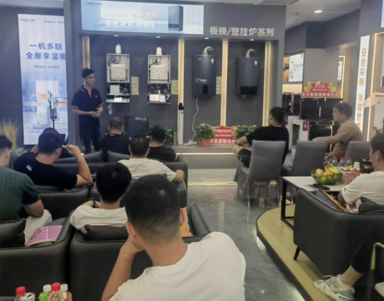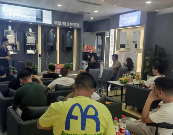 活動伊始,售后技術(shù)部周部長就通過全預(yù)混A9壁掛爐以及VSH10壁掛爐兩款代表性產(chǎn)品的機內(nèi)部件設(shè)計、零部件優(yōu)勢、整機應(yīng)用賣點等方面,為大家更直觀介紹菲思盾壁掛爐基礎(chǔ)原理知識以及產(chǎn)品相關(guān)優(yōu)勢內(nèi)容。重點介紹新一代壁掛爐產(chǎn)品內(nèi)部配件全面升級,為各位經(jīng)銷商客戶提供可靠安全的質(zhì)量保證。分享中不時發(fā)出陣陣稱贊聲,大家對菲思盾的新產(chǎn)品紛紛給予高度評價,并表現(xiàn)出濃厚的興趣。