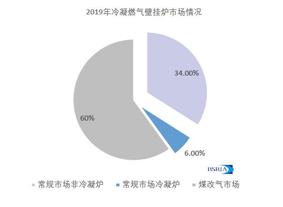 根據佰世越(BSRIA)發布的最新調研數據顯示,2019年燃氣壁掛爐內銷總量為422.2萬臺,同比2018年增加99萬臺,增幅達31%;壁掛爐市場增長動力主要得益于持續上漲的“煤改氣市場”,出貨量為255萬臺,同比增長64%;同時,由于壁掛爐在房地產精裝房項目上的配套率得到了提升,所以2019年,普通項目工程得到11%的同比增長率;而傳統零售渠道則同比下滑8%。