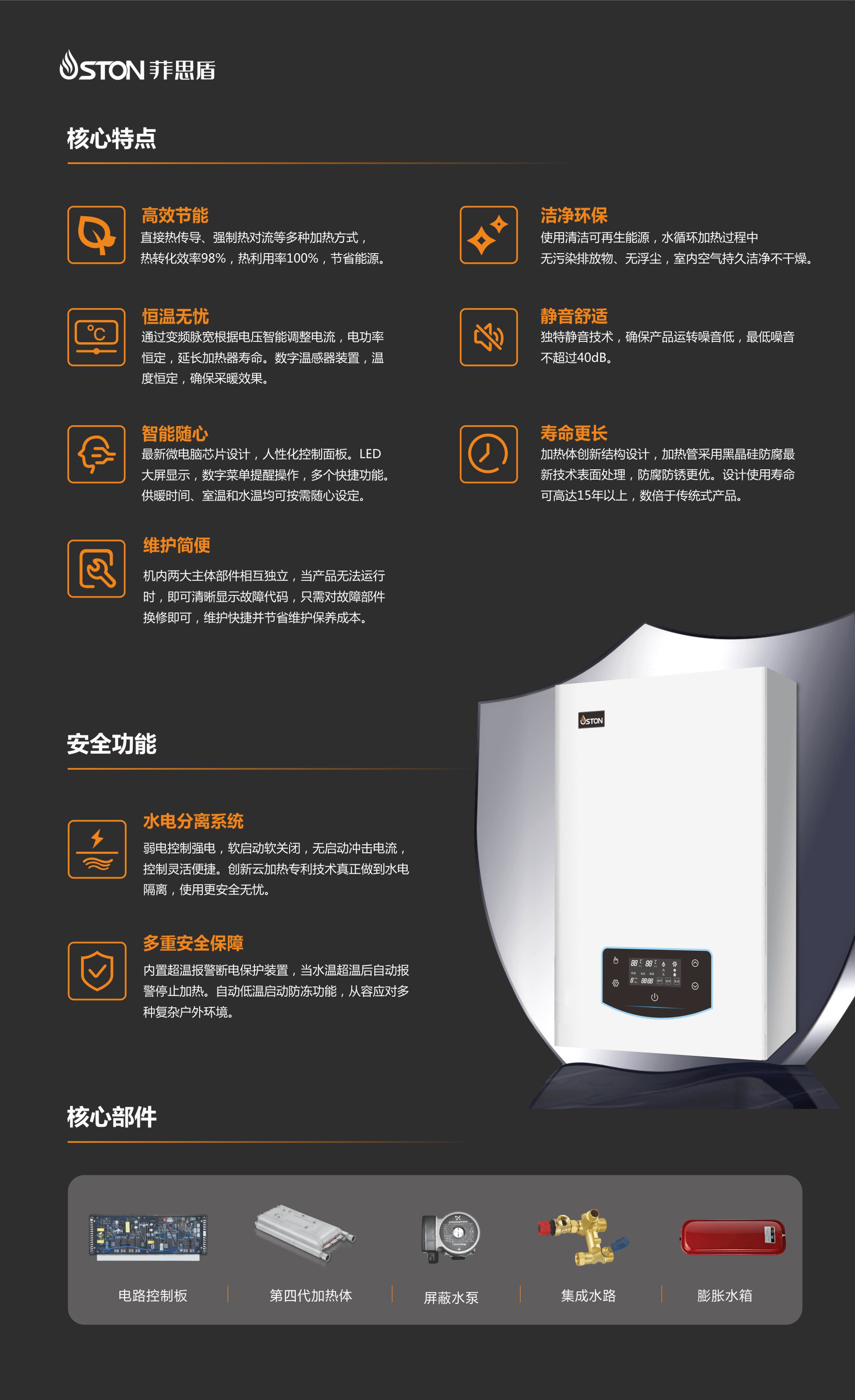 熱轉化效率98%,熱利用率100%,節省能源。