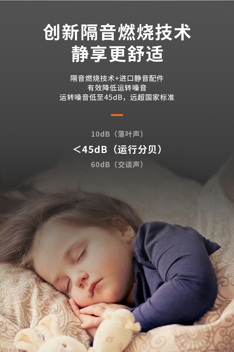 密閉式隔音燃燒設計,持久運行更安靜,整機噪聲低到45dB。