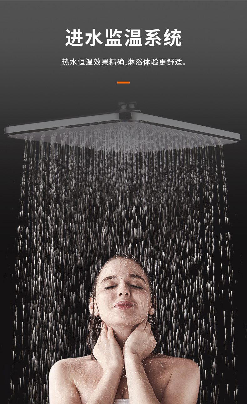 智能恒溫水氣控制技術,水溫控制精確在±1℃,確保熱水恒定,不會忽冷忽熱。